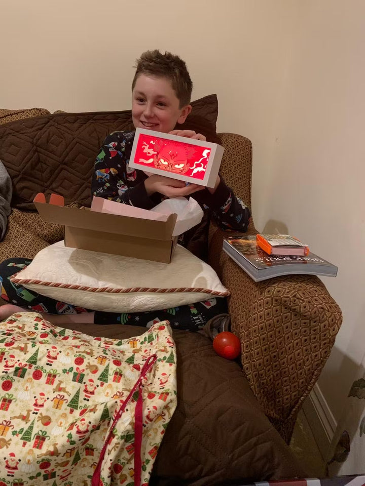 Soft, comforting glow — doubles as a night light with your hero protecting your dreams.