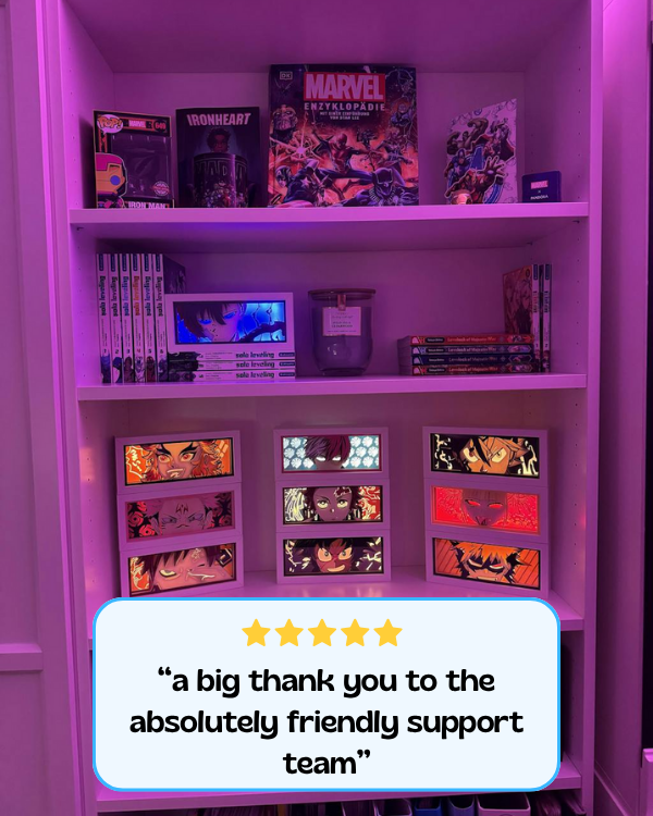 Elevate your manga figures and posters with glowing backlight for the ultimate display.
